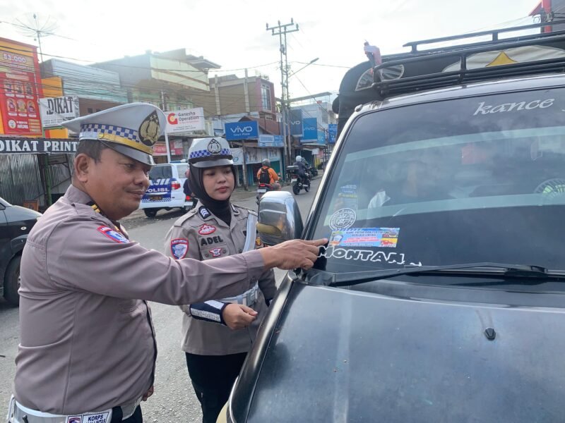Pemasangan stiker tidak hanya dilakukan di lokasi-lokasi strategis, tetapi juga secara langsung pada kendaraan mobil milik masyarakat dan pengendara yang melintas. Langkah ini dilakukan agar pesan keselamatan berkendara dapat tersampaikan lebih dekat dan efektif, sekaligus mengingatkan pengemudi untuk selalu menaati aturan lalu lintas.