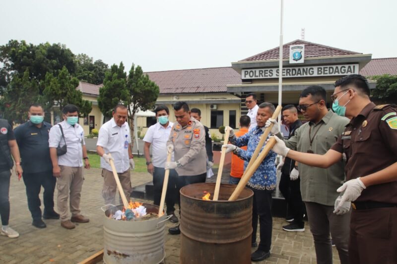 Kegiatan ditutup dengan pemusnahan barang bukti ganja melalui pembakaran sebagai bentuk komitmen Polres Serdang Bedagai dalam pemberantasan narkotika.