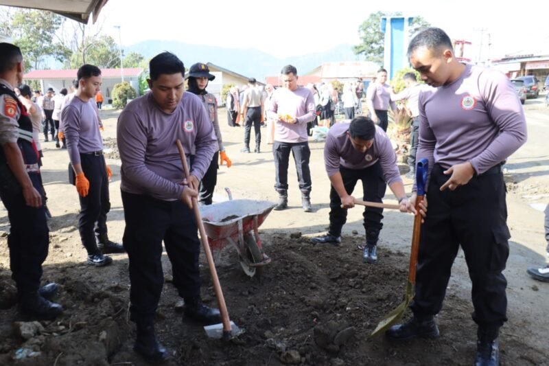 Gotong royong ini melibatkan personel Polres Aceh Tengah, Polsek Kota Takengon, serta Mahasiswa STIK-PTIK Angkatan 83, dengan fokus mempercepat pemulihan area masjid agar kembali nyaman digunakan masyarakat.