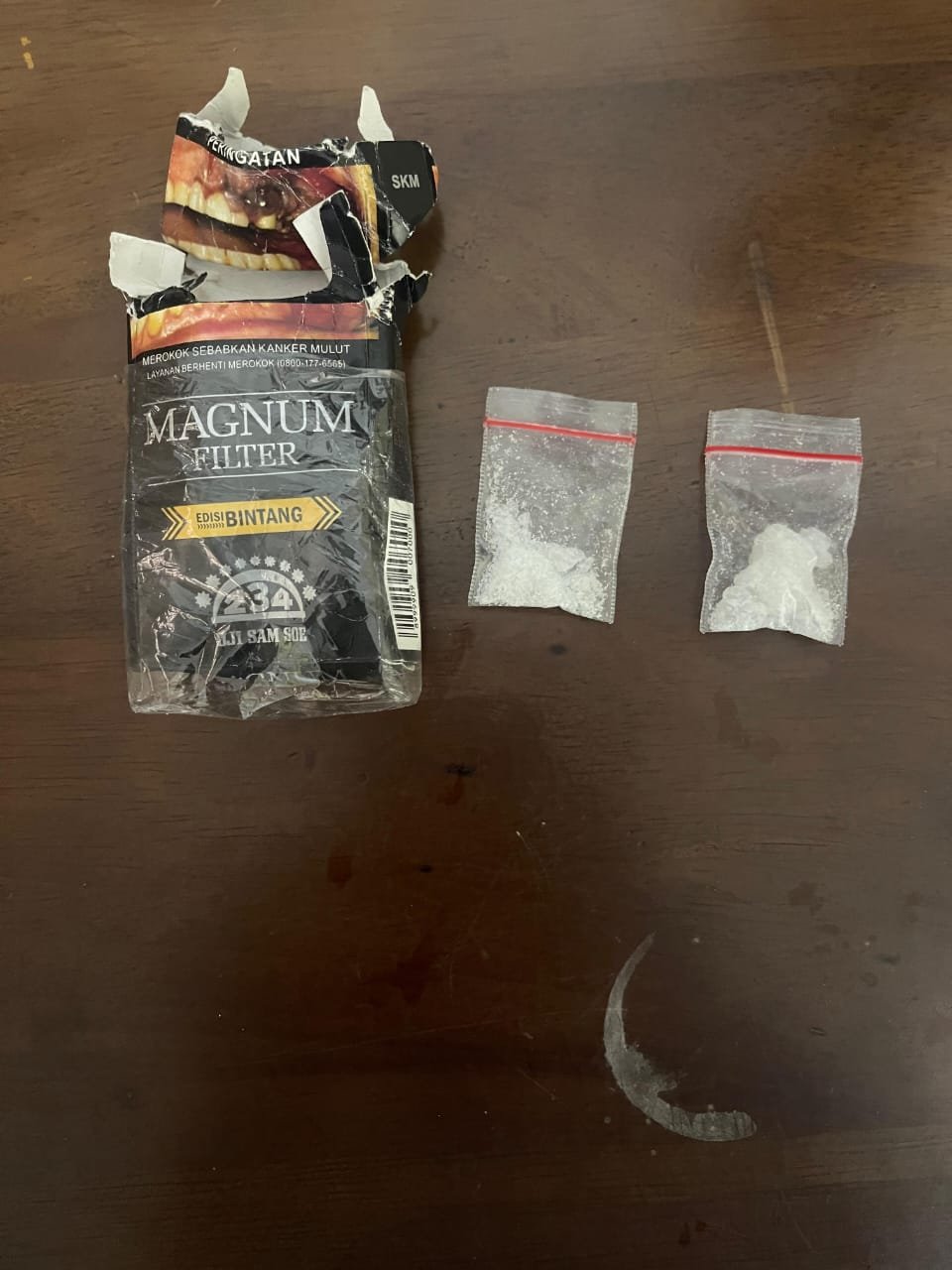 Selanjut Personil melakukan penggeledahan dan dilokasi kejadian ditemukan,1(satu) bungkus rokok magnum warna hitam, 2(dua) Plastik transparan yg berisikan Diduga Narkotika Jenis Sabu- sabu berat brutto 2,61 gram, Saat di Introgasi terduga pelaku Mengakui bahwa Narkotika jenis Sabu sabu tersebut adalah miliknya.