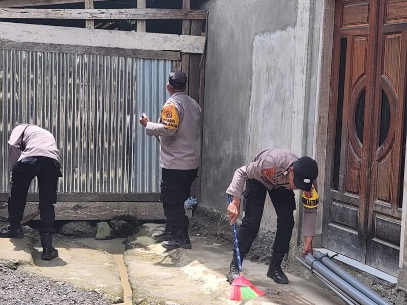 Personel Polsek Celala jajaran Polres Aceh Tengah melaksanakan kegiatan gotong royong pembersihan tempat ibadah sekaligus pembuatan sumur bor di Meunasah Nurul Huda, Kampung Kuyun Uken, Kecamatan Celala, Kabupaten Aceh Tengah, Sabtu (14/2/2026) mulai pukul 10.00 WIB hingga 17.30 WIB.