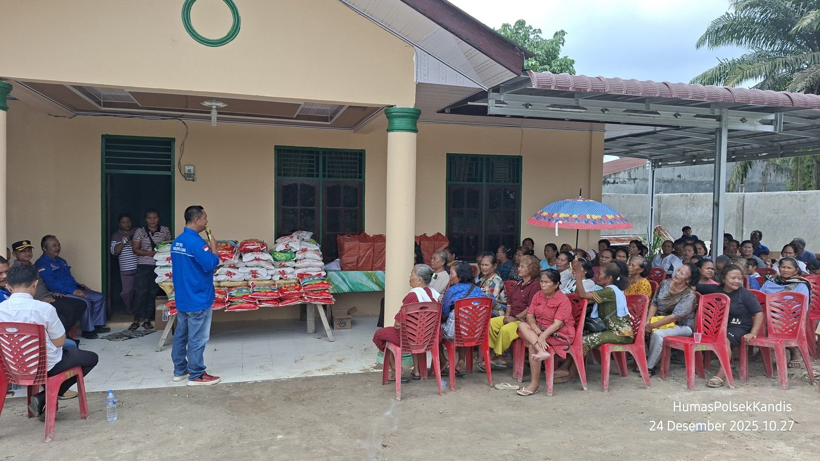 Dalam kegiatan ini, Polsek Kandis bersama PPDI DPC Siak menyalurkan tali kasih berupa 80 sak beras ukuran 10 kilogram dan 80 bungkus roti kepada masyarakat yang membutuhkan sebagai bentuk kepedulian sosial menjelang perayaan Natal.