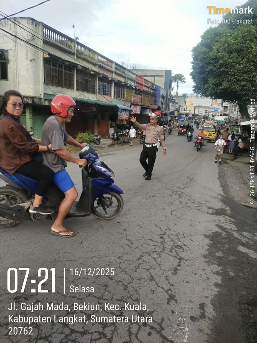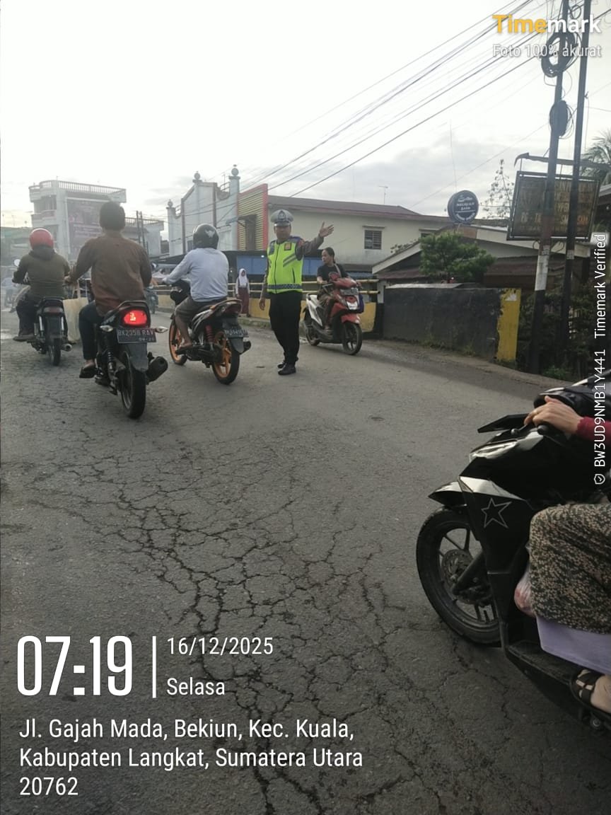 Personel Polsek Kuala melaksanakan kegiatan pengaturan pagi pada Selasa, 16 Desember 2025, mulai pukul 07.00 WIB hingga selesai. Kegiatan ini bertujuan untuk memberikan rasa aman dan nyaman kepada masyarakat, khususnya pada jam sibuk aktivitas pagi hari.