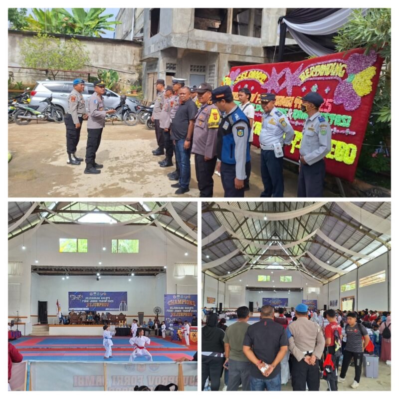 TEBO // MBS – Kepolisian Sektor (Polsek) Rimbo Bujang melaksanakan pengamanan kegiatan Kejuaraan Provinsi (Kejurprov) Federasi Olahraga Karate-Do Indonesia (Forki) Jambi Tahun 2025 yang digelar di Hotel Grand Ratu, Jalan Pahlawan, Kelurahan Sarana Agung, Kecamatan Rimbo Bujang, Kabupaten Tebo, Rabu (17/12/2025).