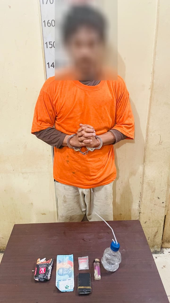 Pelaku yang diamankan berinisial A.P.S. (23), warga Desa Lau Tepu, Kecamatan Salapian. Dari tangan pelaku, petugas menyita barang bukti berupa beberapa paket plastik klip berisi diduga narkotika jenis sabu, timbangan digital, alat hisap sabu (bong), mancis, plastik klip kosong, serta uang tunai sebesar Rp50.000 yang diduga hasil penjualan narkotika.