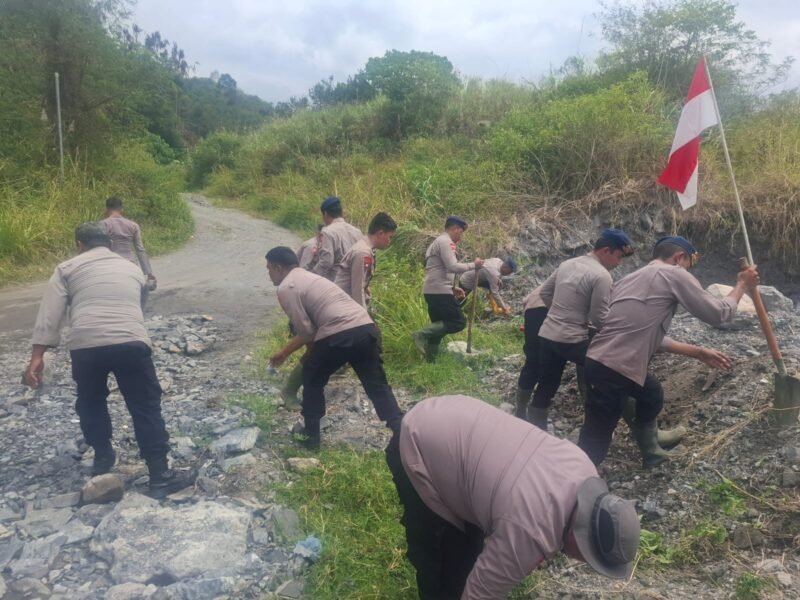 Kegiatan ini bertujuan untuk membantu memulihkan akses jalan menuju permukiman warga yang terdampak longsor dan banjir bandang. Kehadiran personel Polri di lokasi diharapkan dapat mempercepat pemulihan aktivitas masyarakat sekaligus mempererat hubungan silaturahmi antara Polri dan warga,” ujar Iptu Samsul.