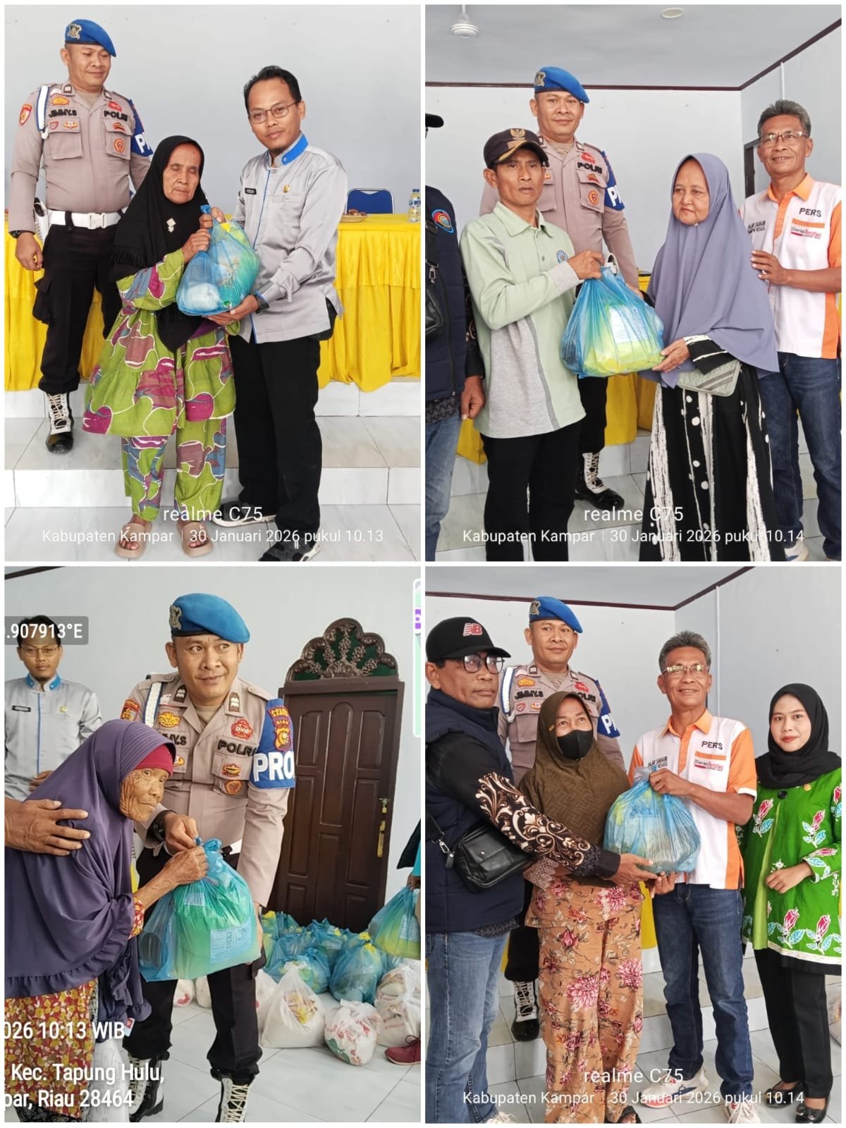KAMPAR, MBS. Kepolisian Sektor (Polsek) Tapung Hulu terus mendorong penguatan kepedulian sosial melalui kegiatan bantuan sosial (bansos) yang dilaksanakan secara rutin setiap akhir bulan. Kegiatan ini merupakan sinergi antara Polsek Tapung Hulu dan Pers Keadilan Tapung Hulu dengan dukungan perusahaan yang beroperasi di wilayah Tapung Hulu.