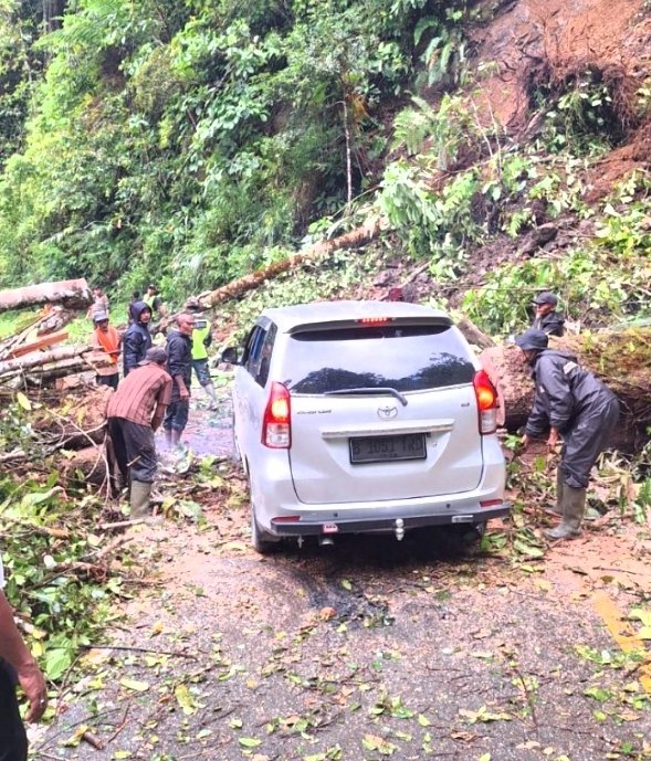 Dari laporan tersebut personil Pos pol, TNI BPBD, PLN dan masyarakat langsung turun ke TKP kejadian tanah longsor dan langsung membersihkan material longsor pemotongan pohon yang jatuh di atas badan jalan tersebut, dia juga menyebutkan pada saat ini jalan sudah kembali normal telah dapat di lalui baik mobil roda 4- 6 juga sepeda motor roda dua ( Honda) sebutnya