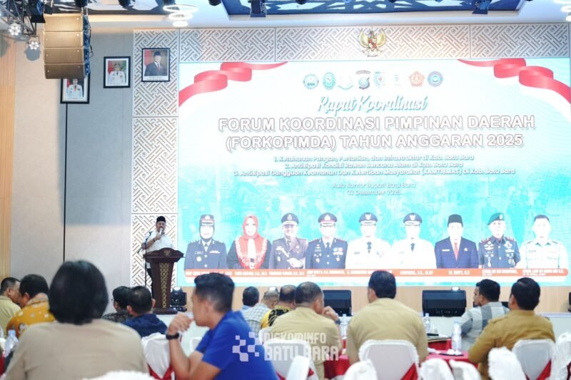 Mbs.com– Sumatera Utara, Batubara- Pemerintah Kabupaten Batubara menggelar Rapat Koordinasi Forum Koordinasi Pimpinan Daerah (Forkopimda) yang dipimpin oleh Bupati Batubara H. Baharuddin Siagian, S.H., M.Si., di Aula Kantor Bupati Batubara, Kecamatan Lima Puluh, Selasa (2/12/2025).