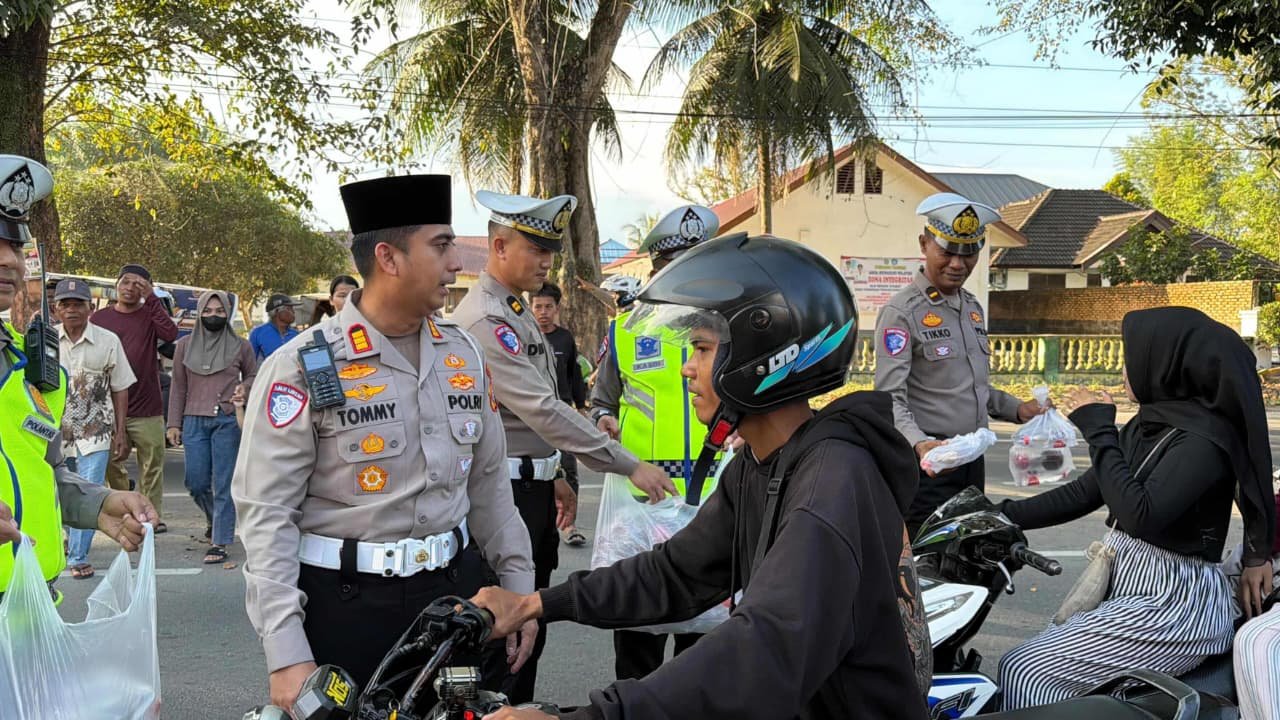 Sebanyak 200 bungkus takjil dibagikan kepada masyarakat dan para pengguna jalan yang melintas sebagai bentuk kepedulian Polri terhadap warga yang menjalankan ibadah puasa.