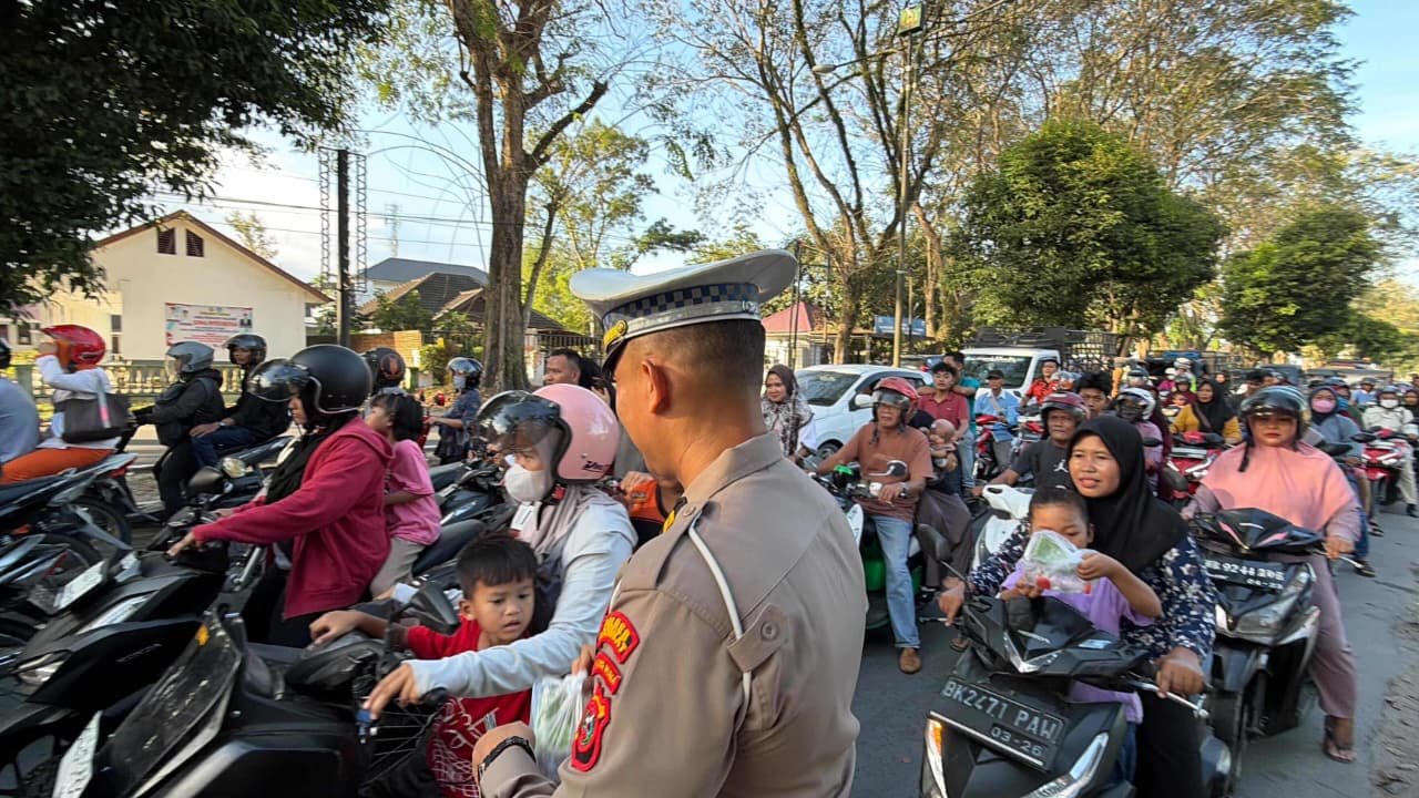 Selain berbagi takjil, personel Polres Langkat dan jajaran juga menyampaikan imbauan kamtibmas serta pesan tertib berlalu lintas kepada masyarakat agar senantiasa mengutamakan keselamatan di jalan.