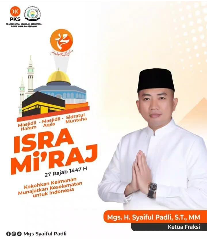 MITRA MABES.COM//Palembang — Malam Isra Mi’raj bukan sekadar peristiwa sejarah keagamaan, melainkan momentum spiritual yang sarat makna bagi umat Islam. Hal inilah yang disampaikan Anggota DPRD Kota Palembang, Mgs Syaiful Padli, ST, MM, saat mengajak masyarakat merenungi kembali perjalanan malam agung Nabi Muhammad SAW,Jum’at(16/1/2026).