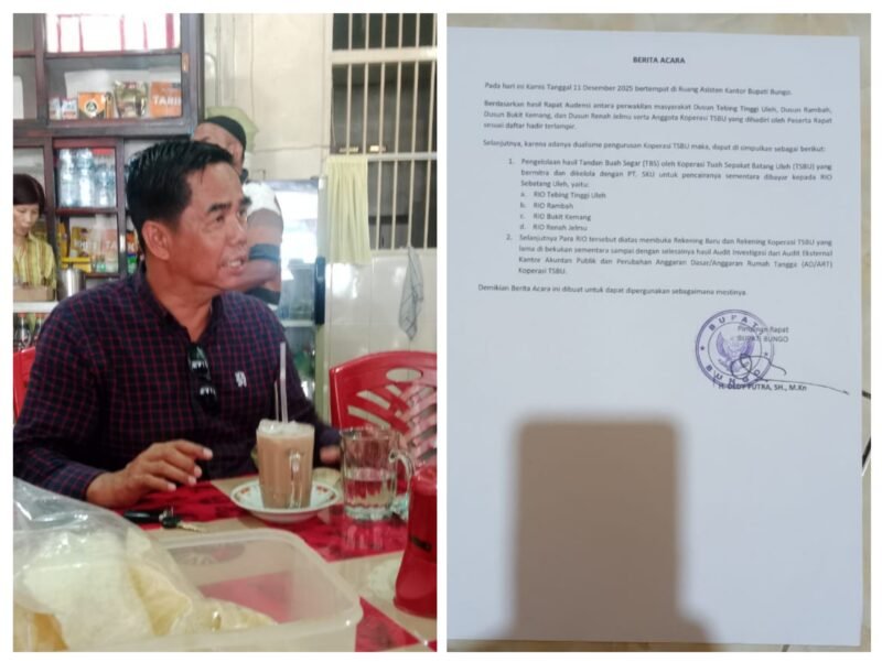 BUNGO // MBS – Persoalan internal Koperasi Tuah Sepakat Batang Uleh (TSBU) hingga kini masih menuai pro dan kontra. Aksi demonstrasi yang dilakukan oleh perwakilan empat dusun se-Batang Uleh di Kantor Bupati Bungo beberapa waktu lalu menjadi sorotan publik dan memunculkan perbedaan pandangan di tengah masyarakat.