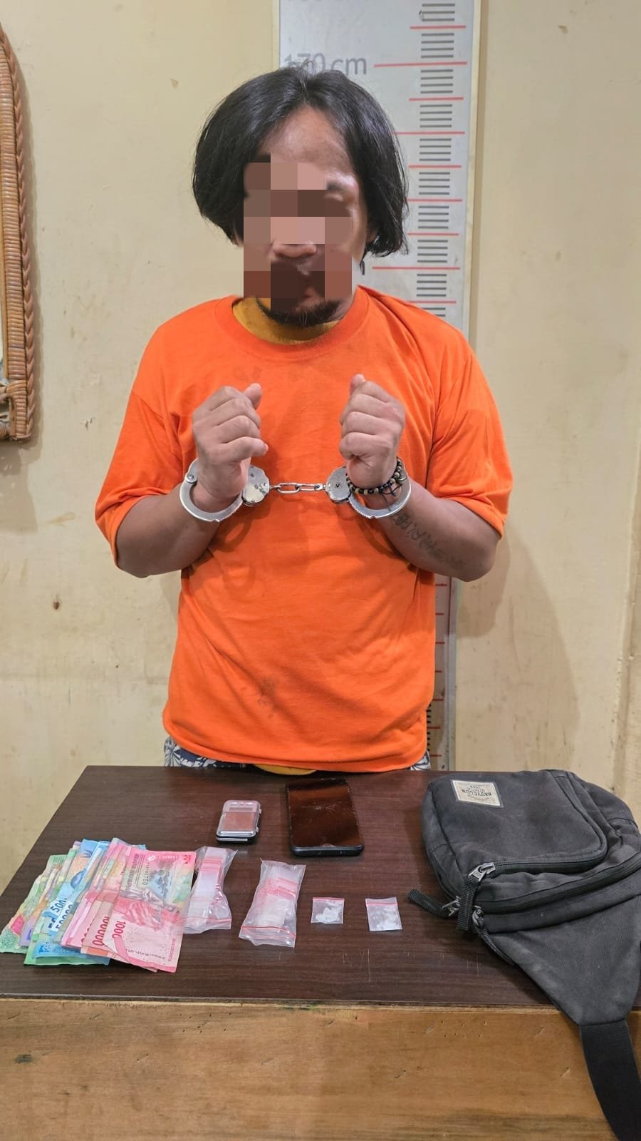 Hasil dari penggerebekan tersebut, petugas mengamankan seorang laki-laki yang diduga sebagai pelaku penyalahgunaan dan peredaran narkoba, berinisial A alias D (40), warga Desa Pulau Semikat, Kecamatan Serapit, Kabupaten Langkat.