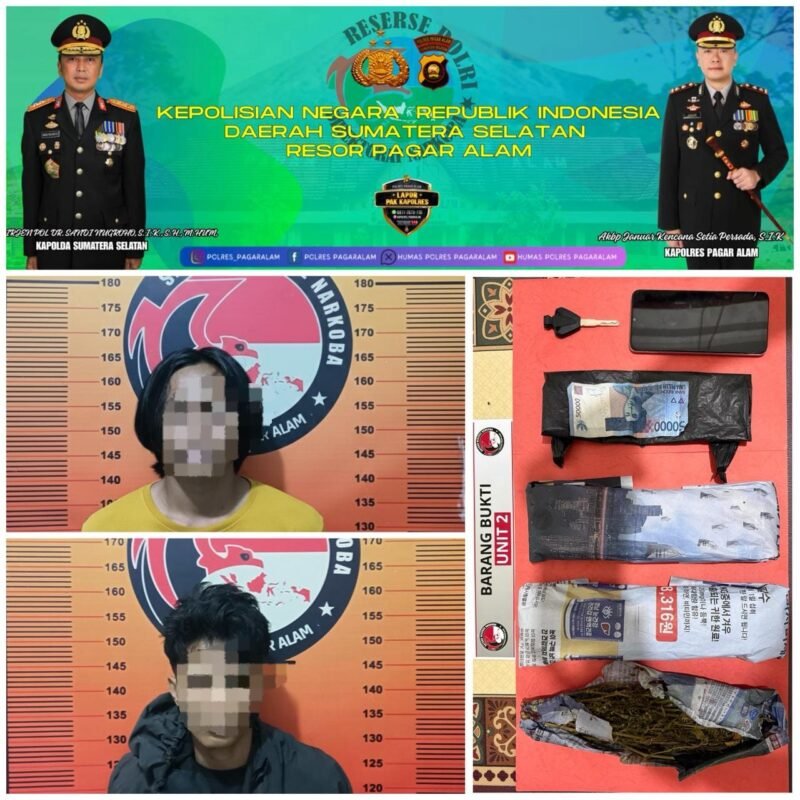 Menindaklanjuti laporan masyarakat, Satresnarkoba Polres Pagar Alam berhasil mengamankan dua pemuda beserta 200 gram ganja di kawasan perumahan Kel Selibar Kec Pagara Alam Utara Penangkapan dilakukan Senin malam, 02 Februari 2026.