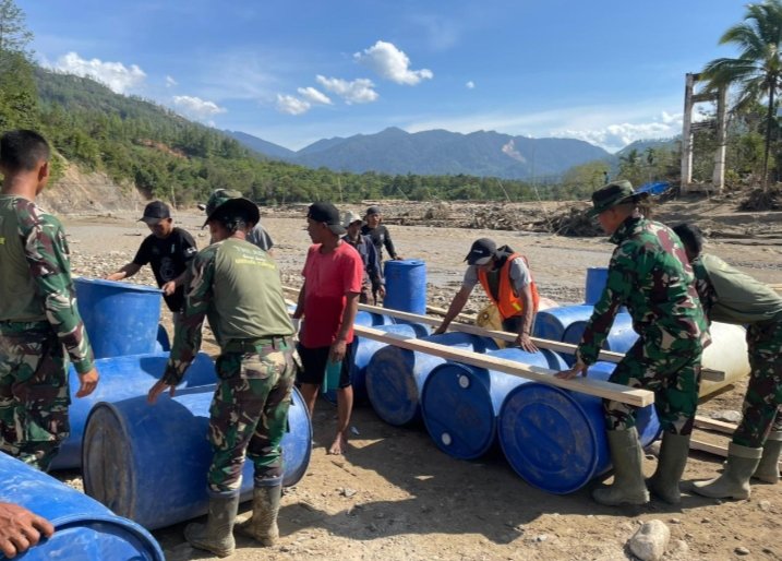 Satgas Gulbancal Kodim 0106/Aceh Tengah Bangun Jembatan Apung.