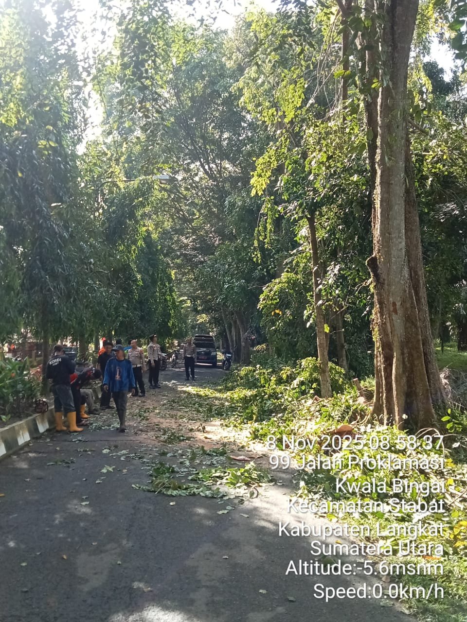 Kepedulian dan kecepatan respons kembali ditunjukkan jajaran Polres Langkat. Petugas gabungan dari Satlantas Polres Langkat bersama Dinas Lingkungan Hidup (DLH) dan Badan Penanggulangan Bencana Daerah (BPBD) Kabupaten Langkat melaksanakan aksi cepat tanggap dengan membersihkan pohon tumbang yang melintang di Jalan Tengku Umar, Kelurahan Kwala Bingai, Kecamatan Stabat, Sabtu (8/11/2025) pagi.