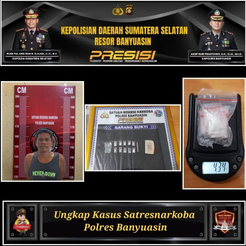 Kapolres Banyuasin melalui Kasat Resnarkoba, menerima laporan bahwa operasi ini berhasil mengamankan seorang pria berinisial A (55) pada Selasa (4/11/2025) sore sekitar pukul 15.30 WIB.