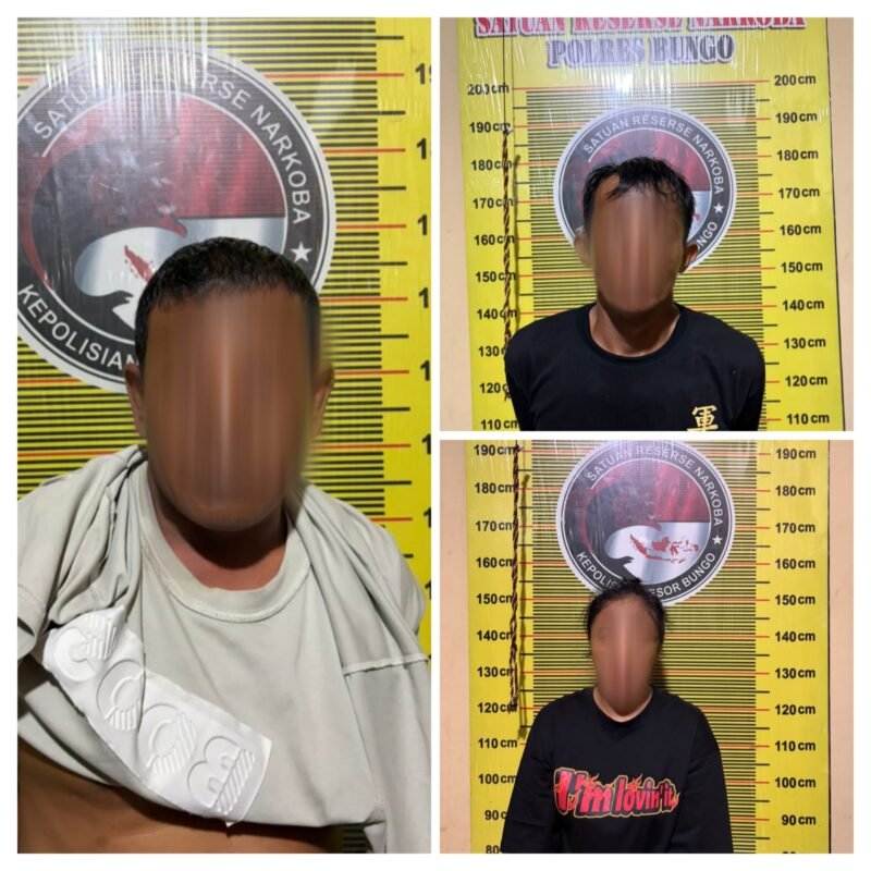Dalam operasi tersebut, petugas mengamankan tiga orang terduga pelaku di sebuah rumah kontrakan di Jalan Mangga, RT 017/RW 001, Kelurahan Lingga Kuamang, Kecamatan Pelepat Ilir, Kabupaten Bungo. Pengungkapan ini disampaikan oleh Kasat Resnarkoba Polres Bungo melalui KBO Satresnarkoba Iptu Feri Irawan.