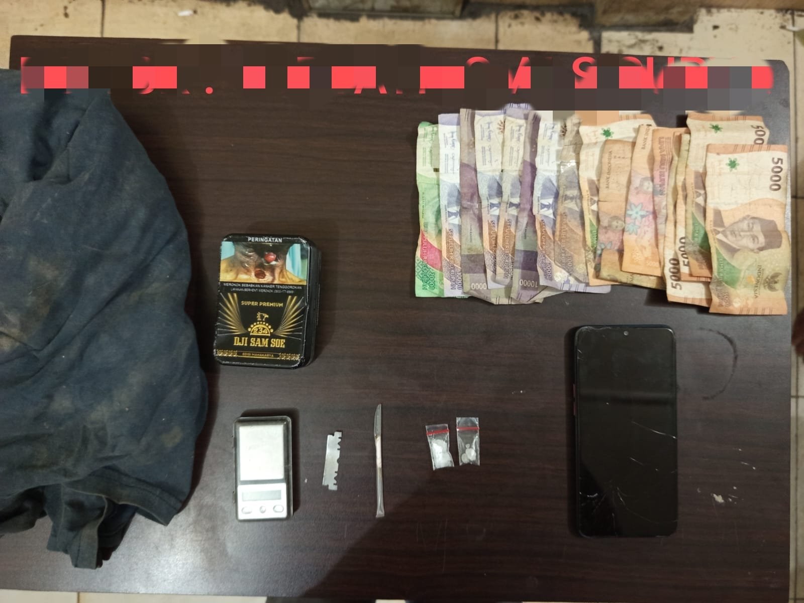 Dari hasil penggeledahan di sekitar lokasi, petugas menemukan 2 plastik klip bening berisi sabu dengan berat brutto 0,96 gram yang berada di dekat batang pohon sawit, tidak jauh dari posisi tersangka. Selain itu, turut diamankan satu unit timbangan, kotak rokok kaleng, pisau silet, sekop, satu unit handphone, pakaian, serta uang tunai sebesar Rp130.000.