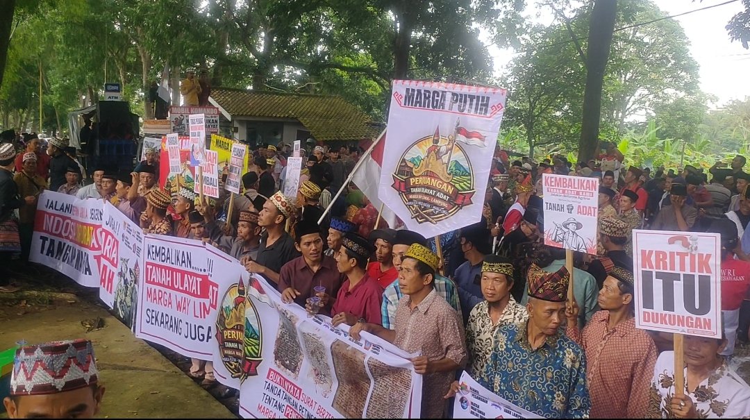 Pesawaran, Lampung-Mitramabes.com Masyarakat Adat Marga Way Lima menggelar aksi demonstrasi menuntut pengembalian tanah ulayat adat Way Lima yang hingga kini masih dikuasai PTPN I Regional 7 Unit Way Lima, meskipun kontrak penguasaan tanah oleh perusahaan perkebunan Belanda telah berakhir sejak tahun 1940.