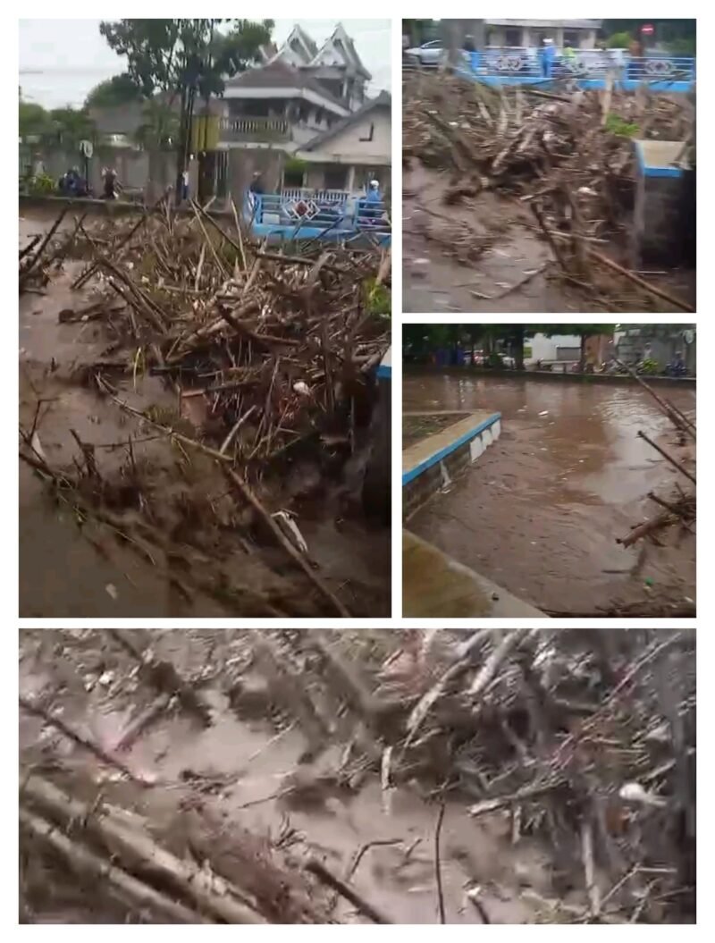 Mitramabes.com – Nganjuk — Hujan deras yang mengguyur wilayah Kabupaten Nganjuk pada Sore ini Senin 02 Maret 2026 jam 15:50 membuat kondisi aliran air di Dam Tanjungrejo, area jembatan Jl. Semeru, Beran, Desa Tanjungrejo, Kecamatan Loceret, berada dalam kondisi siaga setelah dipenuhi tumpukan bambu, ranting pohon, dan material kiriman dari hulu sungai.