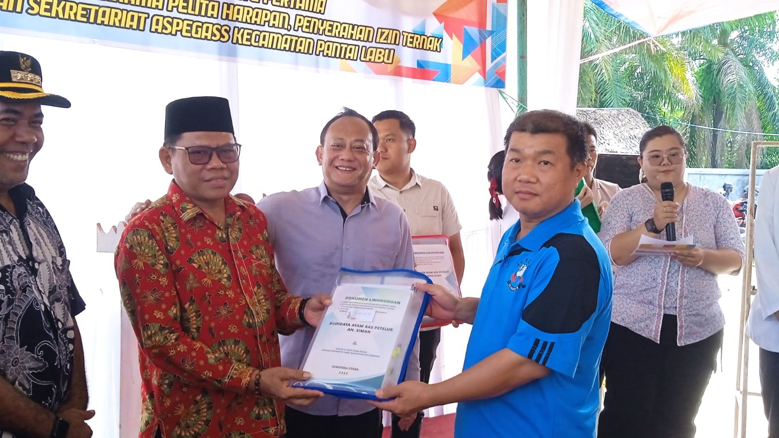Komitmen ini disampaikan Sekretaris Daerah (Sekda) Kabupaten Deli Serdang, Dedi Maswardy SSos MAP, pada Penyerahan Izin Ternak, Peresmian Sekretariat Asosiasi Peternak Unggas Sejahtera (Aspegass), dan Pembagian Beras kepada Lanjut Usia (Lansia) di Jalan Jaya, Dusun II, Desa Paluh Sibaji, Kecamatan Pantai Labu, Minggu (11/1/2026).