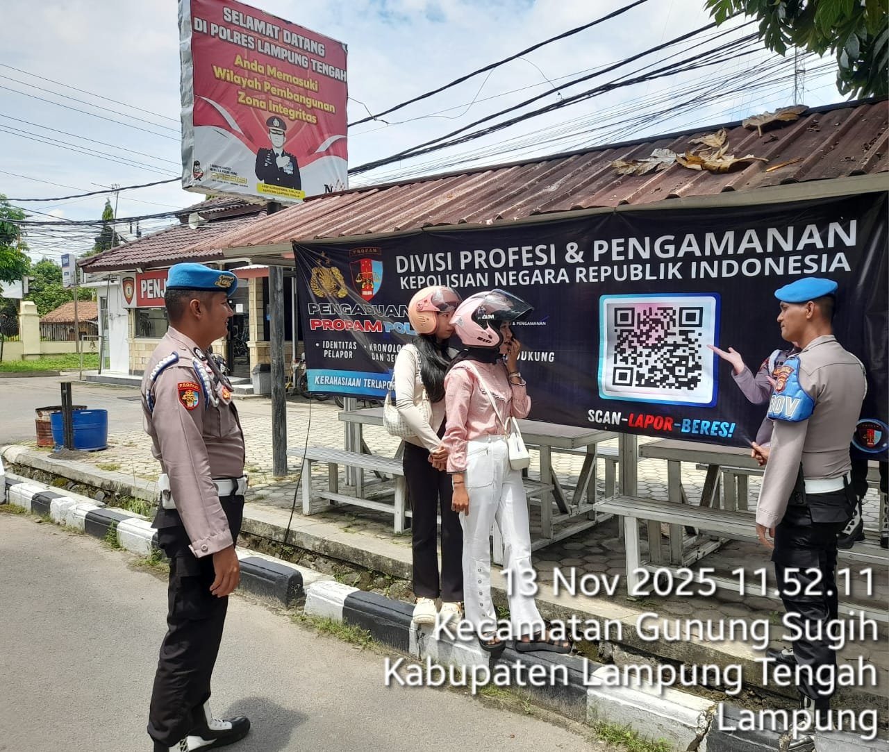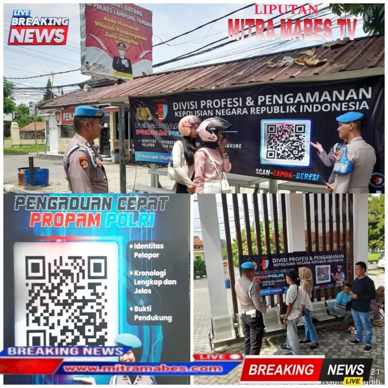 Dalam kegiatan tersebut, perwakilan dari personil Propam Polres Lampung Tengah tersebut menjelaskan cara masyarakat dapat menyampaikan laporan atau pengaduan dengan cepat dan tepat melalui kanal resmi Propam Polri, baik secara daring maupun langsung, contoh dengan cara mengunakan aplikasi propam polri atau Men Scan Berkode sehingga mempermudah masyarakat untuk Laporan.