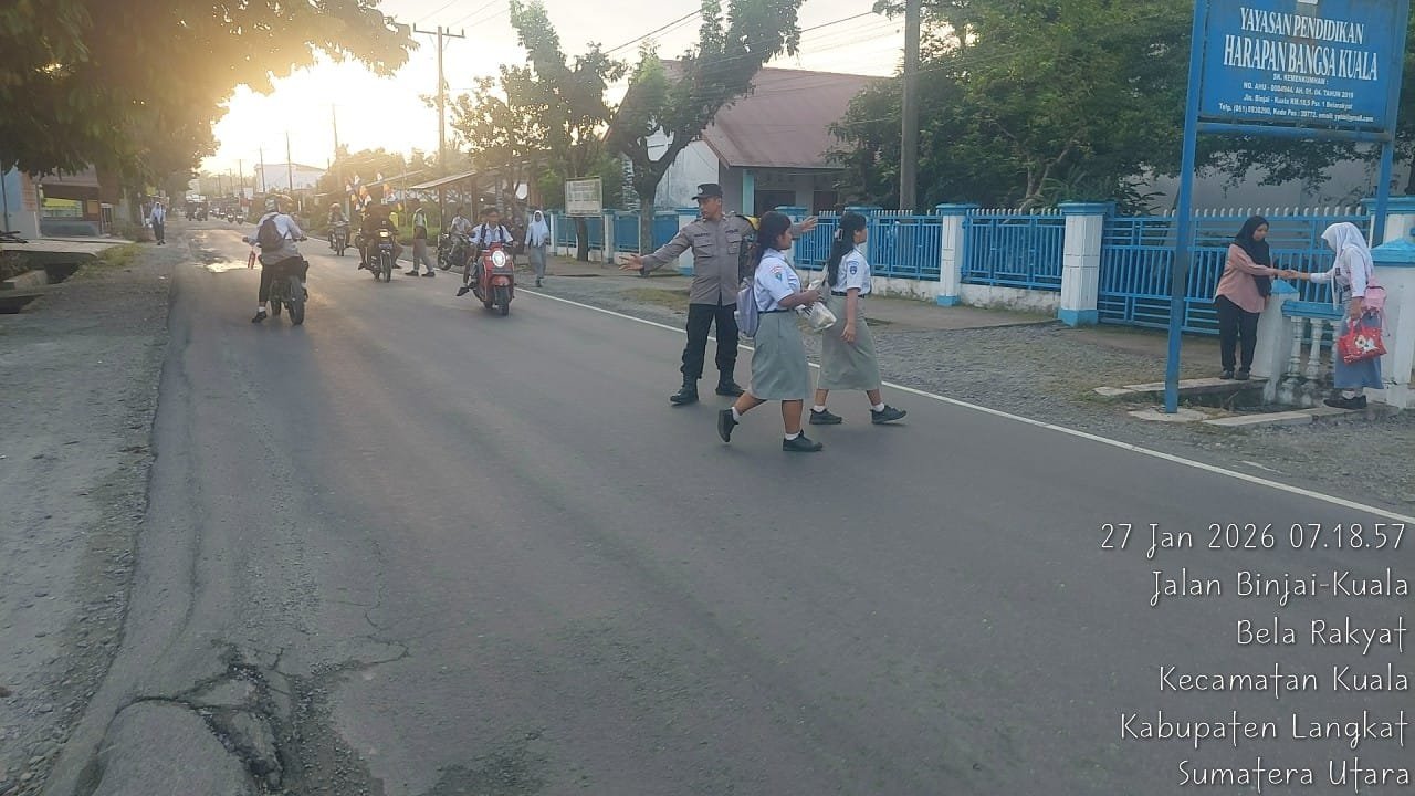 Personel kepolisian disiagakan untuk membantu kelancaran arus lalu lintas, mencegah kemacetan, serta memastikan keselamatan para pelajar saat berangkat ke sekolah. Kehadiran polisi di depan sekolah juga menjadi langkah preventif guna menciptakan rasa aman bagi siswa, orang tua, dan tenaga pendidik.