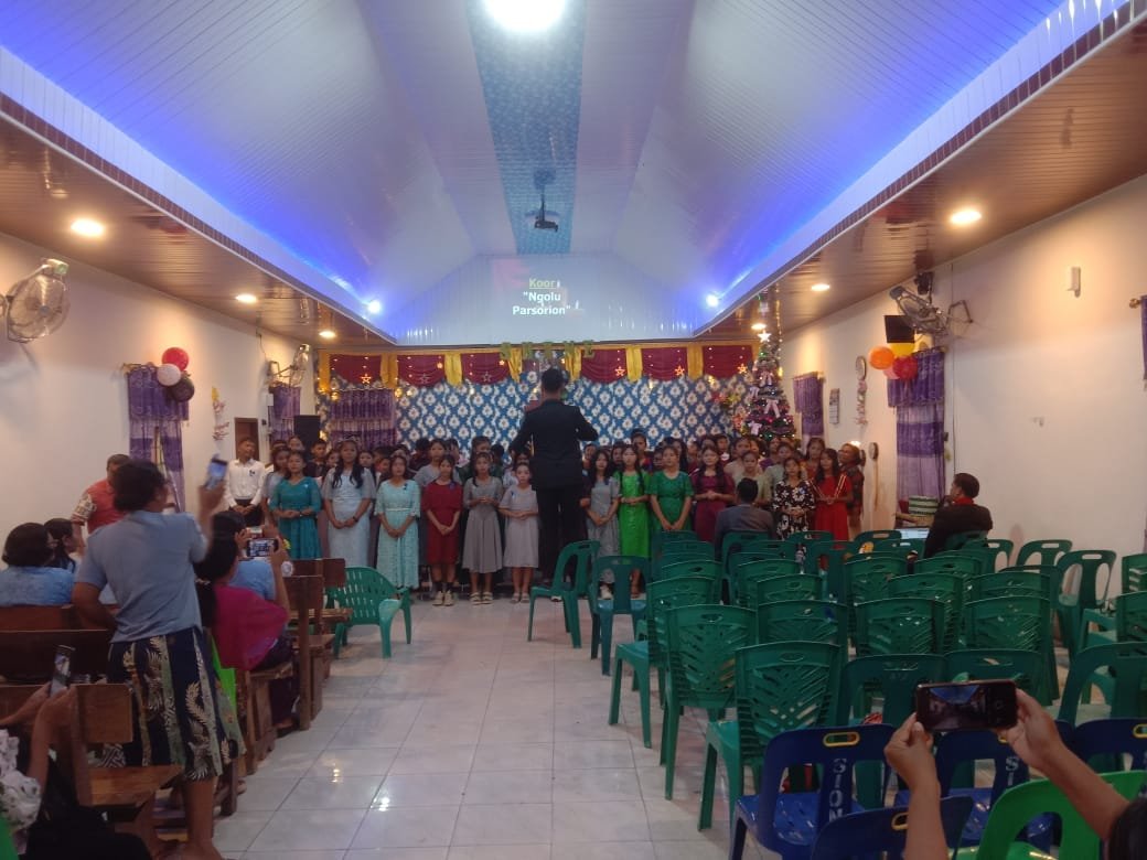 Kab Simalungun. Mitra mabes.com Perayaan natal dengan suasana baru dirayakan oleh smp swasta ptpn4 mayang digereja GPDI ekklesia Nagori raja maligas kecamatan Hutabayu raja kabupaten Simalungun,meski diguyur hujan rintik”perayaan natal yg dilaksanakan oleh panitia natal SMP swasta ptpn4 mayang tidak membuat semangat siswa siswi dan seluruh orang tua murid /wali untuk hadir mengikuti perayaan natal menyambut kelahiran juru selamat dunia Yesus Kristus,