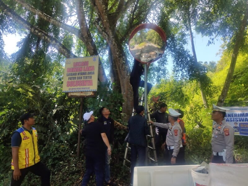 Survei Jalan Kasat lantas Polres Pagar Alam Bersama Stakeholder Memasang Spanduk Himbauan dan Ganti Cermin Kaca Cebung Yang Rusak