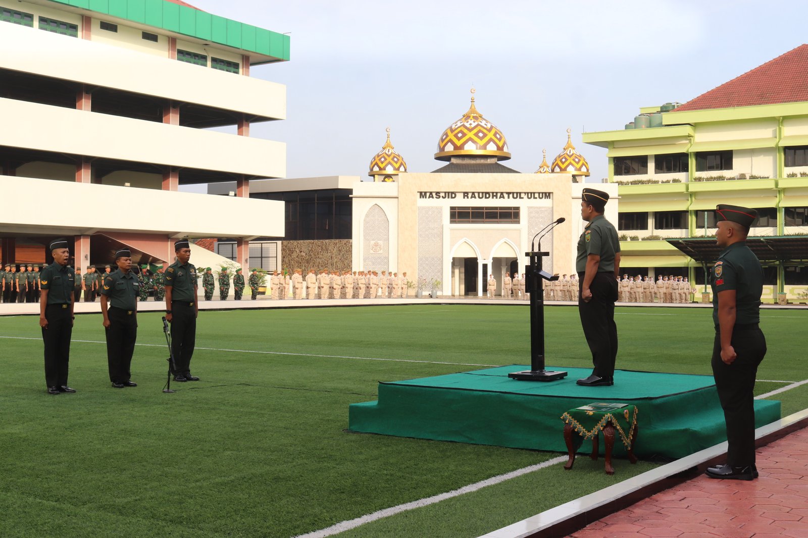 Rangkaian upacara dilanjutkan dengan mengheningkan cipta untuk mengenang jasa para pahlawan, pembacaan teks Pancasila, serta pengucapan Sapta Marga, Sumpah Prajurit, dan 8 Wajib TNI. Seluruh rangkaian tersebut menjadi momentum peneguhan kembali komitmen ideologi, moral, dan etika prajurit TNI.