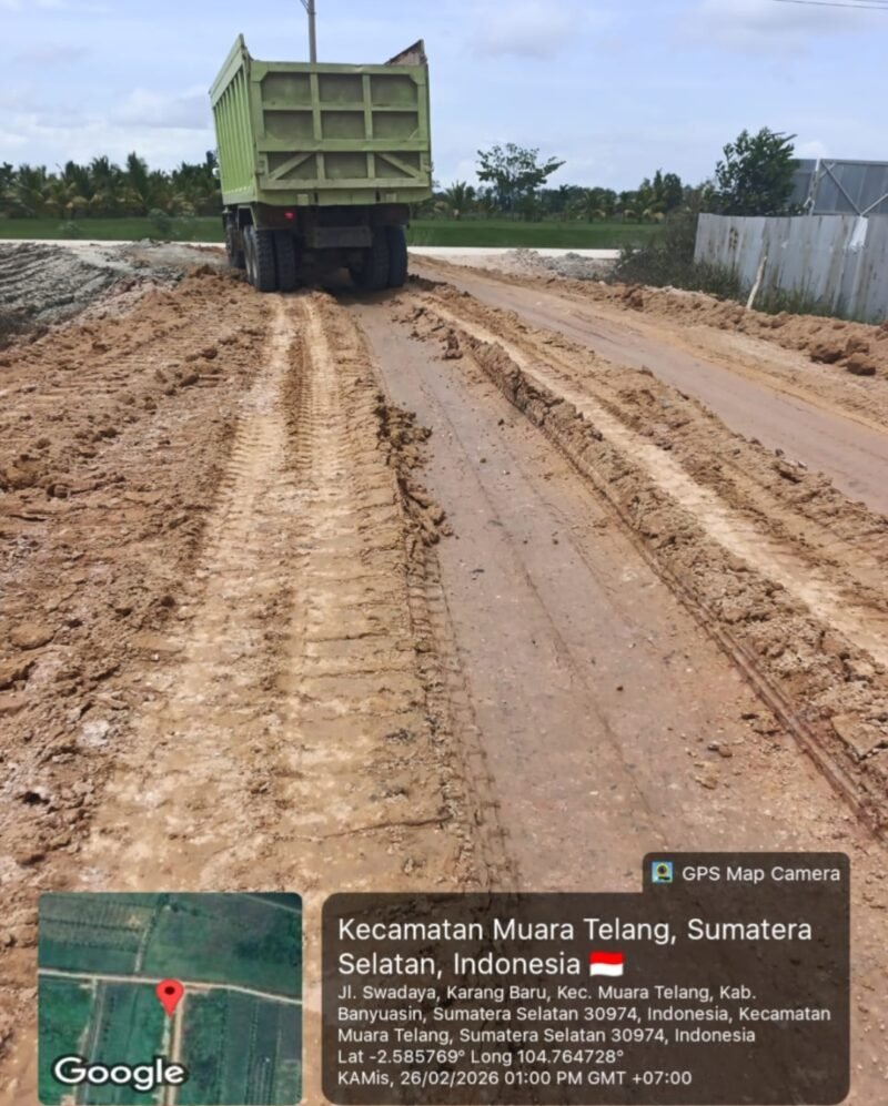 26 Februari 2026 — Dugaan praktik penimbunan tanah tanpa izin dan kontrak resmi menggemparkan warga Desa Karang Anyar, Kecamatan Sumber Marga Telang, Kabupaten Banyuasin, Sumatera Selatan. Aktivitas mencurigakan ini disebut-sebut berlangsung tak jauh dari kawasan industri PT Semen Conch, dan diduga kuat dikendalikan oleh pemilik lahan bernama Koko Hendi.