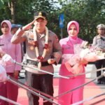 Prosesi penyambutan berlangsung khidmat dan penuh makna. Kapolres Nganjuk disambut langsung oleh Wakapolres Nganjuk, para Pejabat Utama (PJU), Kapolsek jajaran, perwira, anggota, serta ASN Polres Nganjuk.