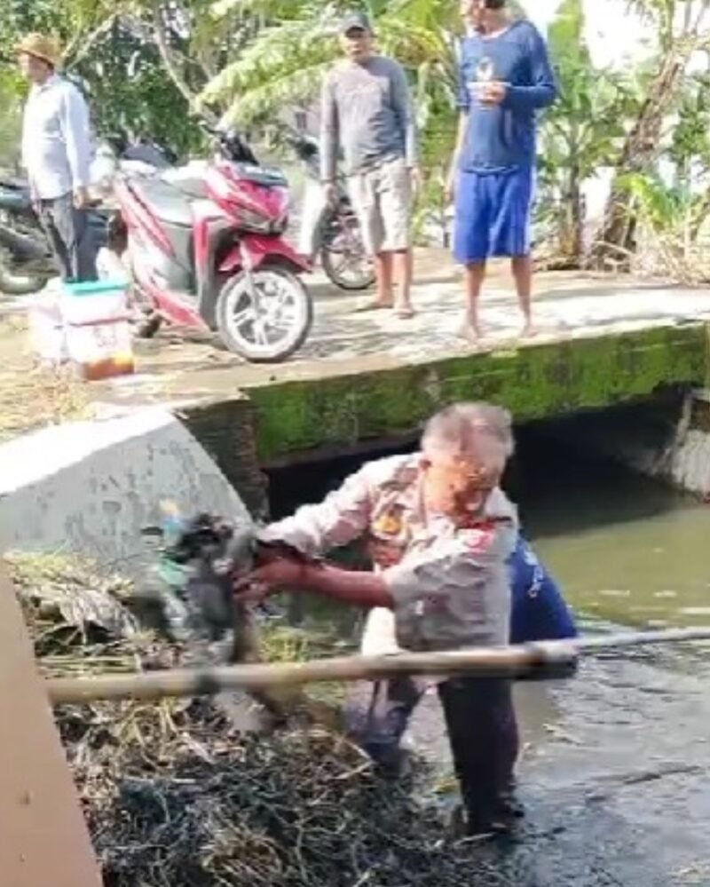 Indramayu, Mitramabes.com – Aksi humanis Kapolsek Kedokanbunder Polres Indramayu Polda Jawa Barat, IPDA Eryana yang turun langsung membersihkan saluran air bersama warga untuk mengantisipasi banjir akibat curah hujan tinggi, menuai apresiasi luas dari masyarakat, termasuk warganet di media sosial.