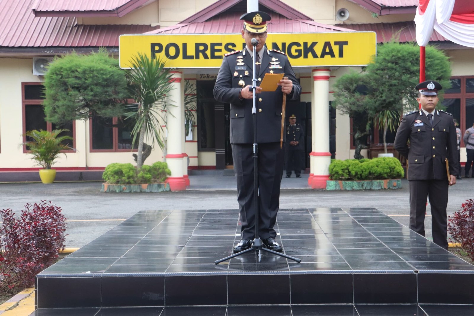Upacara tersebut dihadiri oleh Wakapolres Langkat, para Pejabat Utama (PJU), Perwira Pertama (Pama), Bintara, serta Aparatur Sipil Negara (ASN) Polres Langkat. Seluruh rangkaian kegiatan berlangsung dengan khidmat dan tertib.