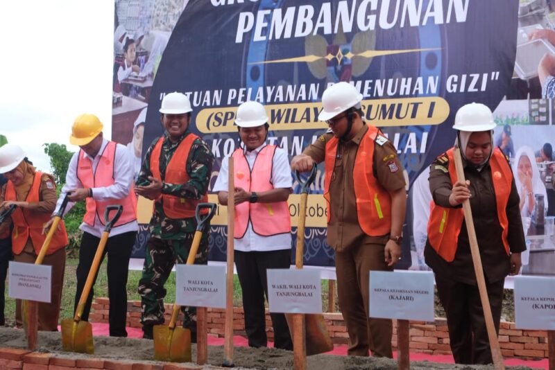 Mbs.com- Sumatera Utara, Tanjungbalai- Wali Kota Tanjungbalai, Mahyaruddin Salim bersama Wakil Wali Kota Muhammad Fadly Abdina menghadiri Ground Breaking Pembangunan Gedung Satuan Layanan Pemenuhan Gizi (SPPG), bertempat di Sebelah GOR Mini Tanjungbalai Jalan Sei Raja, Kelurahan Sei Raja, Kecamatan Sei Tualang Raso, Kota Tanjungbalai, Senin (20/10/2025).