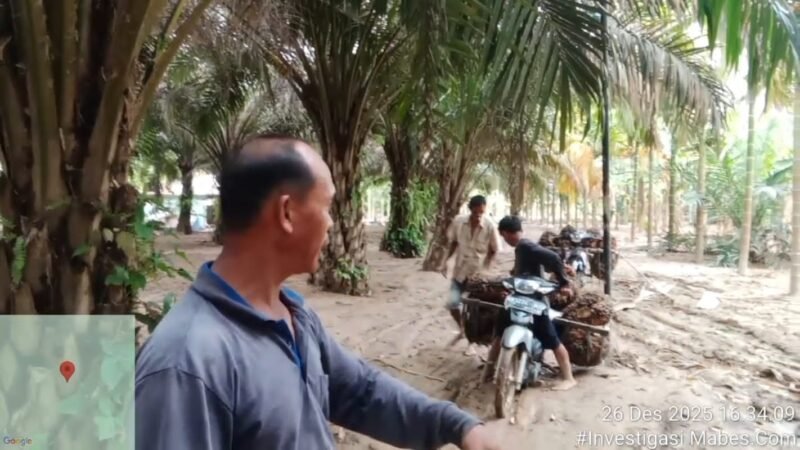 Pengendara, terutama Masyarakat yang sedang melangsir hasil panen kebun kelapa sawit mengalami kesulitan Jum’at, 26/12/2025.