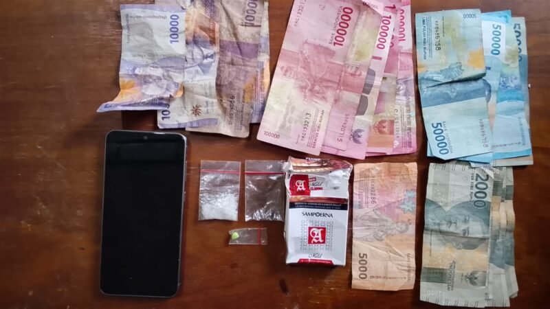 Penggeledahan lanjutan terhadap pelaku menemukan 1 unit handphone yang berisi percakapan terkait dugaan transaksi narkotika. Selain itu turut diamankan uang tunai sebesar Rp751.000.
