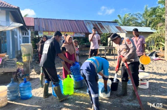 Suka Makmue- Mitra Mabes. Com” Sejak Senin 01/12/2025 Kapolres Nagan Raya telah salurkan air bersih kepada warga 11 desa di kecamatan Tripa makmur yang di terjang pasca banjir bandang tersebut, penyaluran sejak pukul 12,00 wib hingga 17, 30 wib” Selasa 02 Desember 2025