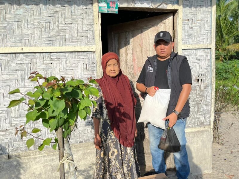 Media online Arka Media menyalurkan bantuan paket sembako kepada warga kurang mampu dan lanjut usia (lansia) di Dusun VII, Desa Bogak Besar, Kecamatan Teluk Mengkudu, Kabupaten Serdang Bedagai, Sabtu (8/11/2025).